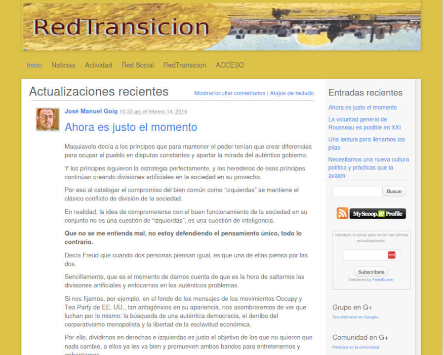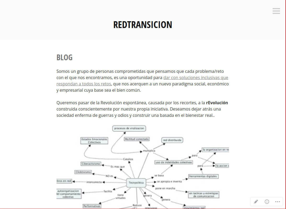Red Transición fué la evolución de Reddeideas durante el 15M. Tiene un sitio de respaldo en WordPress.com.